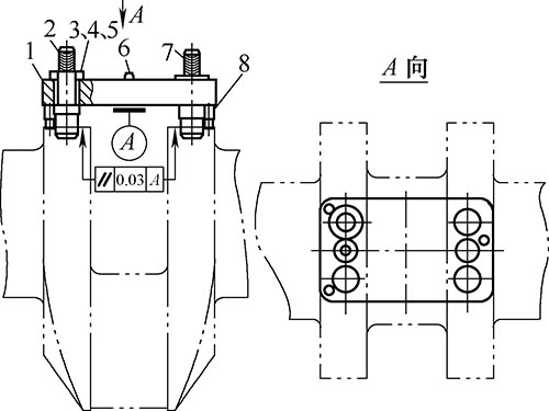 通過使用安裝面鉆模配相應(yīng)的輔具加工安裝面孔,解決了安裝面鉆孔、鉸孔和攻螺紋過程中遇到的問題。這是解決孔加工問題的方式中較為簡單的一種,值得推廣。