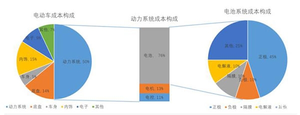 回答這個(gè)問題之前,我們先來了解一下,目前電動(dòng)汽車,電池在整車成本的大致比例情況。從下圖可以發(fā)現(xiàn),動(dòng)力電池的成本占比整車成本達(dá)到40%左右,也就是說一個(gè)10萬的車,電池的成本可能就占到了4萬。國家新能源補(bǔ)貼,很大比例是用來補(bǔ)貼電池的成本。