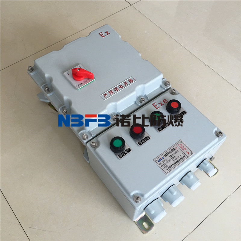 A、外殼采用鑄鋁合金壓鑄成型,表面噴塑。主腔采用隔爆型結(jié)構(gòu),接線腔增安型結(jié)構(gòu)。內(nèi)可選配裝斷路器、交流接觸器、熱繼電器、變壓器、熔斷器、Ex防爆控制按鈕、信號燈、轉(zhuǎn)換開關(guān)等。配電箱采用模塊化設計,各種回路可以自由組合,電器元件選型可由用戶而定,其結(jié)構(gòu)緊湊、外形美觀。進出線采用鋼管或電纜布線均可,進出線口方向可由用戶要求而定。