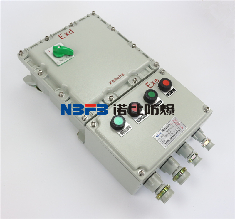 A、外殼采用鑄鋁合金壓鑄成型,表面噴塑。主腔采用隔爆型結(jié)構(gòu),接線腔增安型結(jié)構(gòu)。內(nèi)可選配裝斷路器、交流接觸器、熱繼電器、變壓器、熔斷器、Ex防爆控制按鈕、信號燈、轉(zhuǎn)換開關(guān)等。配電箱采用模塊化設(shè)計,各種回路可以自由組合,電器元件選型可由用戶而定,其結(jié)構(gòu)緊湊、外形美觀。進出線采用鋼管或電纜布線均可,進出線口方向可由用戶要求而定。
