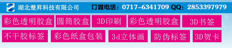 主營產(chǎn)品:3D包裝_不干膠防偽標(biāo)簽_3D立體印刷_3D印刷廠_彩色包裝盒_pvc透明膠盒—湖北楚昇科技