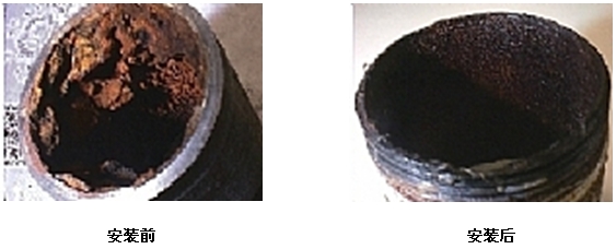產(chǎn)生管垢的 CaCO3 會(huì)被粉碎及中和,形成一層穩(wěn)定的非垢物質(zhì),形成霰石分子,清洗有效率 90%以上。
