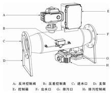 全自動反沖式過濾器主要有優(yōu)質(zhì)碳鋼筒體,特殊結(jié)構(gòu)的不銹鋼契形濾網(wǎng),蝶閥及排污裝置所組成。當過濾器工作時,蝶閥處于開啟狀態(tài),水流由入口進入過濾器,經(jīng)過濾網(wǎng)過濾到出口。當過濾器需要排污時,關(guān)閉蝶閥,打開排污閥,水流經(jīng)濾網(wǎng)前半段過濾,部分水流有出口流入系統(tǒng),剩余水流由濾網(wǎng)后半段外側(cè)流入內(nèi)側(cè),經(jīng)排污口排出,起到反向自動沖洗濾網(wǎng)的作用。整個沖洗過程系統(tǒng)可正常工作,無需停機。