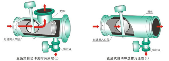 開封反沖洗除污器  要有優(yōu)質(zhì)碳鋼殼體、特殊結(jié)構(gòu)的不銹鋼楔形濾網(wǎng),水流導(dǎo)向閥及排污裝置組成。當(dāng)過濾器工作時,水流導(dǎo)向閥處于開啟狀態(tài),水流由入口進(jìn)入過濾器,經(jīng)過濾網(wǎng)過濾到出口。當(dāng)過濾器需要排污時,關(guān)閉水流導(dǎo)向閥、打開排污閥,水流經(jīng)過濾網(wǎng)前半段過濾,部分水流由出口流入系統(tǒng),剩余水流由濾網(wǎng)后半段外側(cè)流入內(nèi)側(cè),經(jīng)排污口排出,起到反向自動沖洗濾網(wǎng)的作用。這樣整個沖洗過程系統(tǒng)可以正常運(yùn)行,無需停機(jī)。