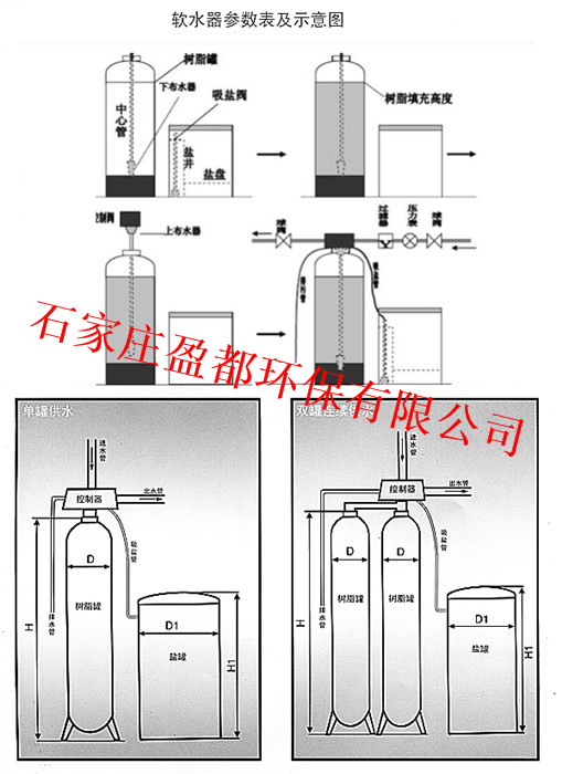 3. 均勻布水系統(tǒng):采用射流式布水,樹脂有效交換容量得以充分發(fā)揮,用鹽控制精確,無(wú)須鹽泵。