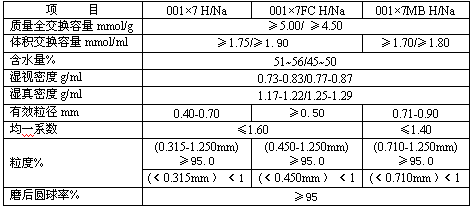 離子樹脂:強(qiáng)酸性陽離子交換樹脂;