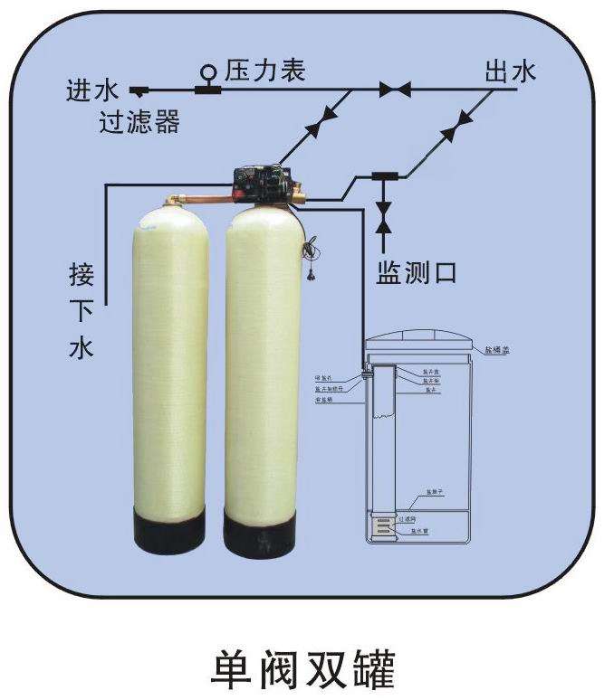 適用場合:時間型控制一般應用在硬度較低(<4mmol/L),用水量穩(wěn)定(用水波動不超過10%)、出水要求不高、用水量較小的情況。