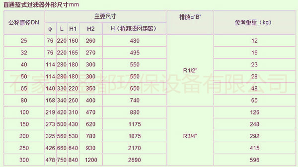 哈密毛發(fā)過(guò)濾器型號(hào)表