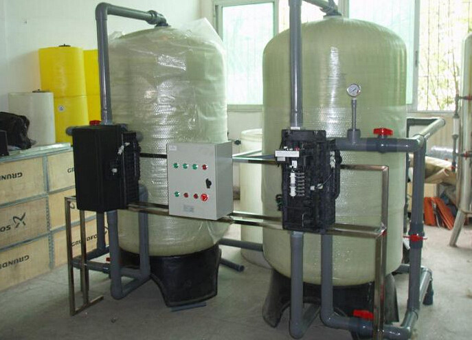 由于水的硬度主要由鈣、鎂形成及表示,故一般采用陽(yáng)離子交換樹(shù)脂(軟水器),將水中的Ca2+、Mg2+(形成水垢的主要成份)置換出來(lái),隨著樹(shù)脂內(nèi)Ca2+、Mg2+的增加,樹(shù)脂去除Ca2+、Mg2+的效能逐漸降低。當(dāng)樹(shù)脂吸收一定量的鈣鎂離子之后,就必須進(jìn)行再生,再生過(guò)程就是用鹽箱中的食鹽水沖洗樹(shù)脂層,把樹(shù)脂上的硬度離子在置換出來(lái),隨再生廢液排出罐外,樹(shù)脂就又恢復(fù)了軟化交換功能。