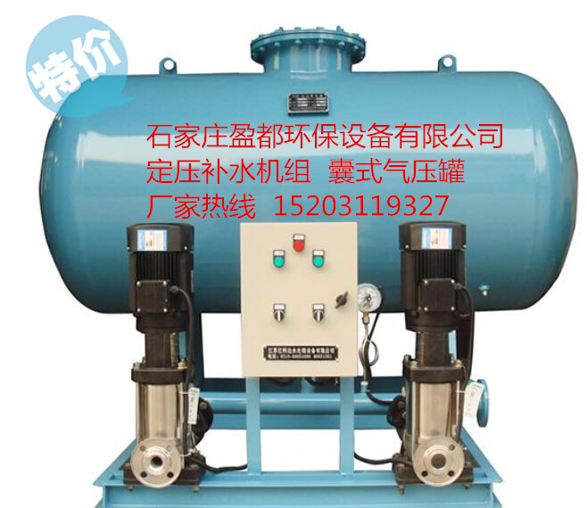 (1)構(gòu)造:定壓補(bǔ)水罐是由隔膜罐(空壓罐)定壓泵,控制柜三大件組成。