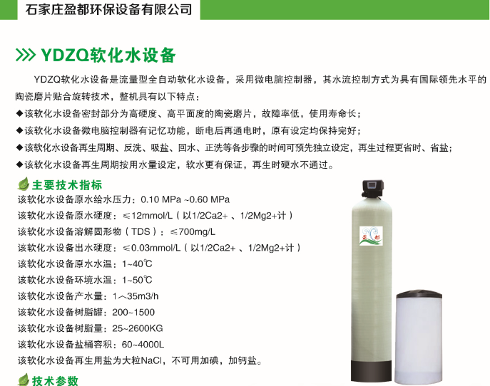 1、設備運行周期和進鹽量可根據原水硬度的高低選擇調整,樹脂用量少,耗鹽低,水質優(yōu),操作簡單,維護方便.