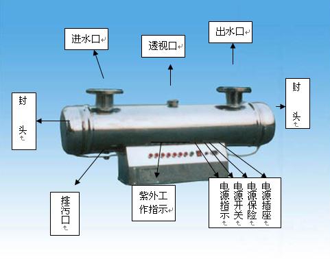 紫外線消毒器配件:主要有筒體,紫外線燈,鎮(zhèn)流器,套管,封頭,進(jìn)水口,出水口,排污口,卡箍,O型圈,指示燈,開關(guān),電源線等組成。(高配可選:手動清洗裝置,全自動清洗裝置,紫外線強(qiáng)度檢測儀,時間累時器)。