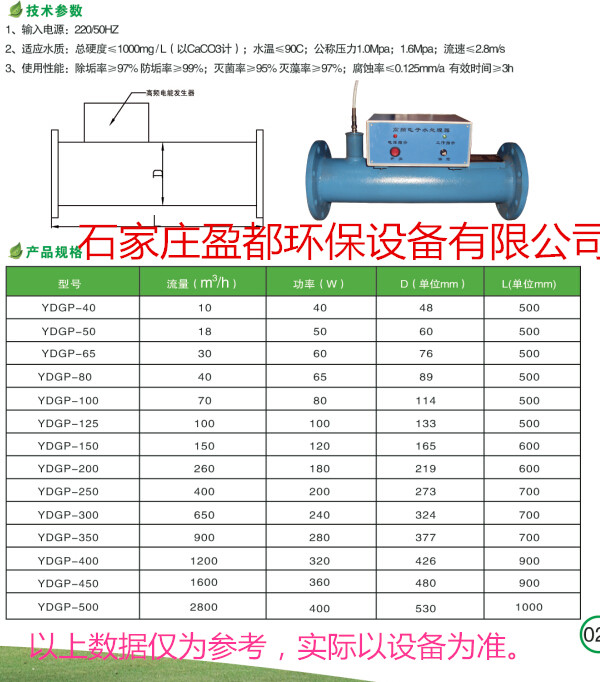 黃南電子水處理器型號(hào)表