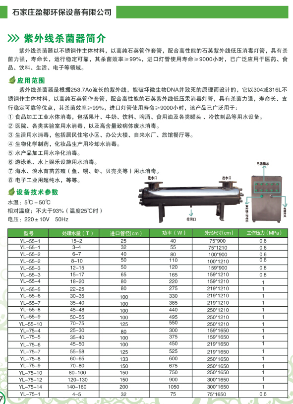 泳池、溫泉、水療、水上樂(lè)園、戲水池等循環(huán)水處理系統(tǒng)設(shè)計(jì)研發(fā)的紫外線(xiàn)消毒設(shè)備,物理殺菌,安全無(wú)毒副作用,殺菌迅速,無(wú)二次污染,效率大于99%,大大減少投加氯劑消毒藥品用量,已廣泛應(yīng)用于全國(guó)上百項(xiàng)工程項(xiàng)目中,替代了傳統(tǒng)的臭氧消毒系統(tǒng)。