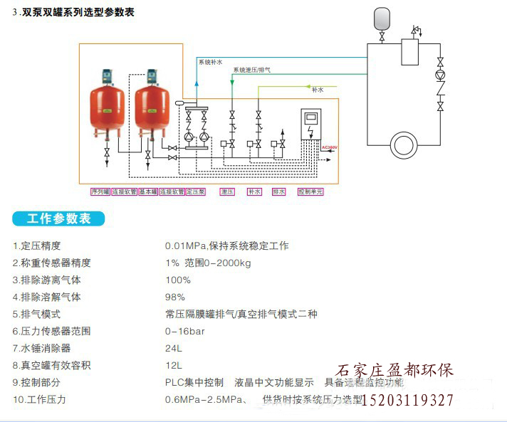 提高設(shè)備的傳熱效率消除管道噪音及系統(tǒng)中氣阻現(xiàn)象 脫氣單臺處理水系統(tǒng)容積最大可到 150m³一用一備,雙立式泵補水功能