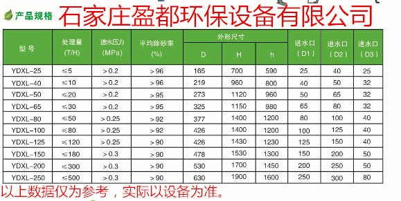 湖南旋流除砂器 可在運(yùn)行中清污,即不必關(guān)閉水泵,在排污時(shí),排污閥緩慢開啟,先流出的是污水,接著是濁水,最后是清水,清水流出的同時(shí)清洗了排污,因此,排污閥關(guān)閉后不會(huì)漏水。安裝時(shí)需將污水引到排水溝處。 旋流除砂器一臺(tái)設(shè)備可以替代普通旋流除砂器、沉淀器、管道過濾器、除污器等四件設(shè)備。進(jìn)水投加絮凝劑、殺菌劑等還起到混合器的作用。設(shè)備按進(jìn)水口方向常規(guī)設(shè)計(jì)為左進(jìn)上出水型(面對(duì)標(biāo)牌),如選用右進(jìn)型,定貨時(shí)敬請(qǐng)說明。設(shè)備如設(shè)置電控箱和排污電動(dòng)閥,可以實(shí)現(xiàn)全自動(dòng)運(yùn)行。