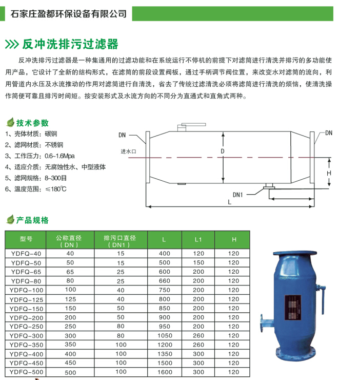 一、陽泉反沖洗除污器 技術(shù)參數(shù)