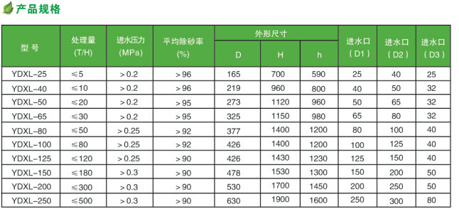 1)旋流除砂器耗能低,除砂效果好,特別適合含砂量較高的系統(tǒng)使用