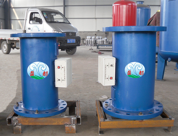 除垢器:陰極殼體由鋼管制成,殼體中心裝有一根金屬陽極。被處理介質(zhì)通過金屬電極與殼體之間的環(huán)狀空間流入用水設備。