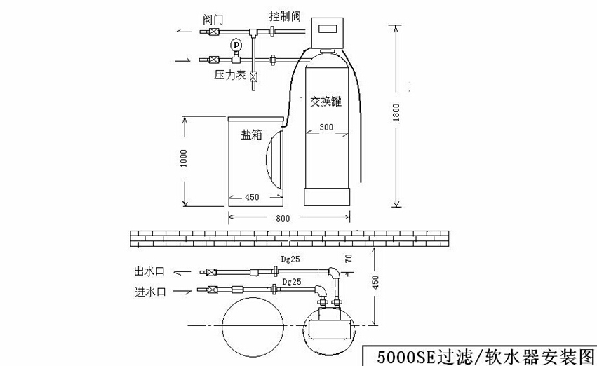 3.均勻布水系統(tǒng):采用射流式布水,樹脂有效交換容量得以充分發(fā)揮,用鹽控制精確,無須鹽泵。