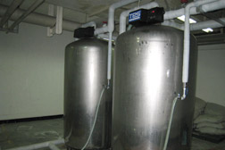 全自動軟水器采用鈉型強酸性陽離子樹脂將原水中的鈣、鎂離子置換出去,經軟化除鹽設備處理后的水可直接做為蒸汽鍋爐的補給水。其化學反應為:2RNa+Ca2+(Mg2)=R2Ca(Mg)+2Na+。當樹脂吸附到一定量的鈣、鎂離子后必須進行再生-用飽和鹽水浸泡樹脂把樹脂里的鈣、鎂離子等硬度置換出來,恢復樹脂的軟化交換能力,并將廢液排出。其化學反應為:R2Ga=2RNa+Ca2+ 。