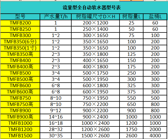 適用場合:時(shí)間型控制一般應(yīng)用在硬度較低(<4mmol/L),用水量穩(wěn)定(用水波動(dòng)不超過10%)、出水要求不高、用水量較小的情況。