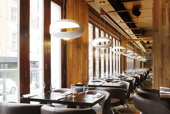 地板,是整個餐廳一個最直接、最直觀展示在顧客面前的形象,干不干凈、衛(wèi)不衛(wèi)生就往地上看一眼結(jié)論就出來了。因此地板的裝修在色調(diào)的上可以根據(jù)餐廳整體格調(diào)來進行選擇。使用材料的選擇是一個重要的考慮問題,最好是防滑的、易于清洗的裝修材料,比如防滑的防木瓷磚。既然可以達到實用的目的,又易于清洗,隨時可保持干凈、整潔的形象。