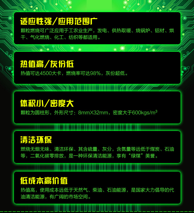 本公司專業(yè)生產各種成型生物質顆粒燃料,產品直接應用于鍋爐等常規(guī)熱力設備。隨著可持續(xù)發(fā)展和市場可再生能源的不斷利用,具有環(huán)保價值的新型生物質成型燃料得到廣大消費者的提倡!
