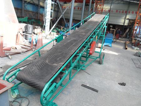 2、轉(zhuǎn)動裝置為電動滾筒,并配有充氣輪胎和鋼輪兩種行走輪,機長10米以上傾角可調(diào)。