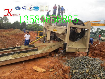 旱地淘金設(shè)備:旱地淘金設(shè)備由裝載機上料于裝料斗中,物料經(jīng)過上料皮帶均勻進入滾筒篩分,直徑大于1cm的石子通過溜槽排入廢料區(qū),小于1cm的礦料漿經(jīng)過自動選金機,沙子等廢料排入廢料區(qū),含金沙的富礦漿進入淘金離心機中再次富集。
