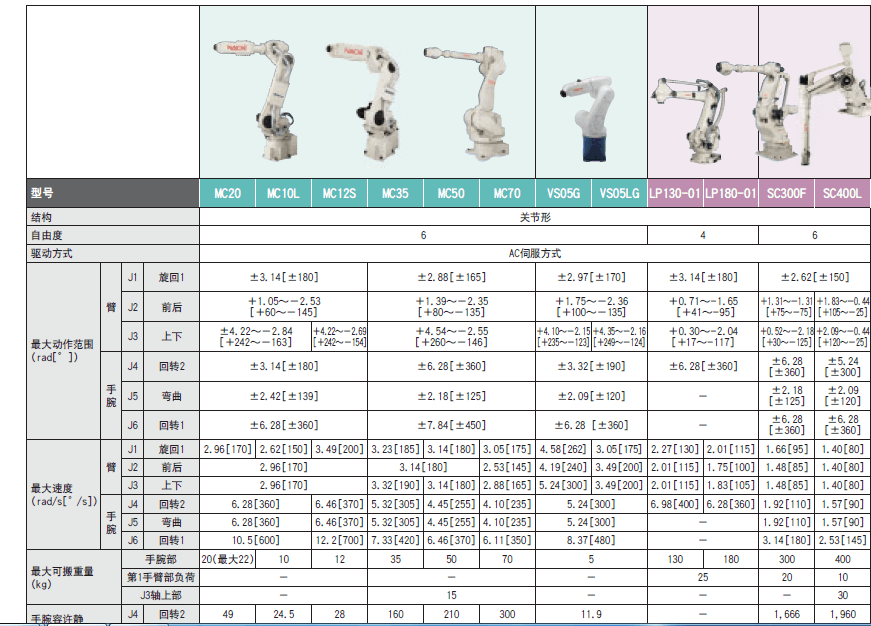 日本不二越上市6軸垂直多關(guān)節(jié)機(jī)器人“Presto MC20”。采用了與2007年11月發(fā)布的7軸機(jī)器人“Presto MR20”相同的基座。其安裝寬度為280mm,比以往機(jī)型減小了40%,作用半徑為1722mm,加長(zhǎng)了10%。售價(jià)為430萬(wàn)日元。