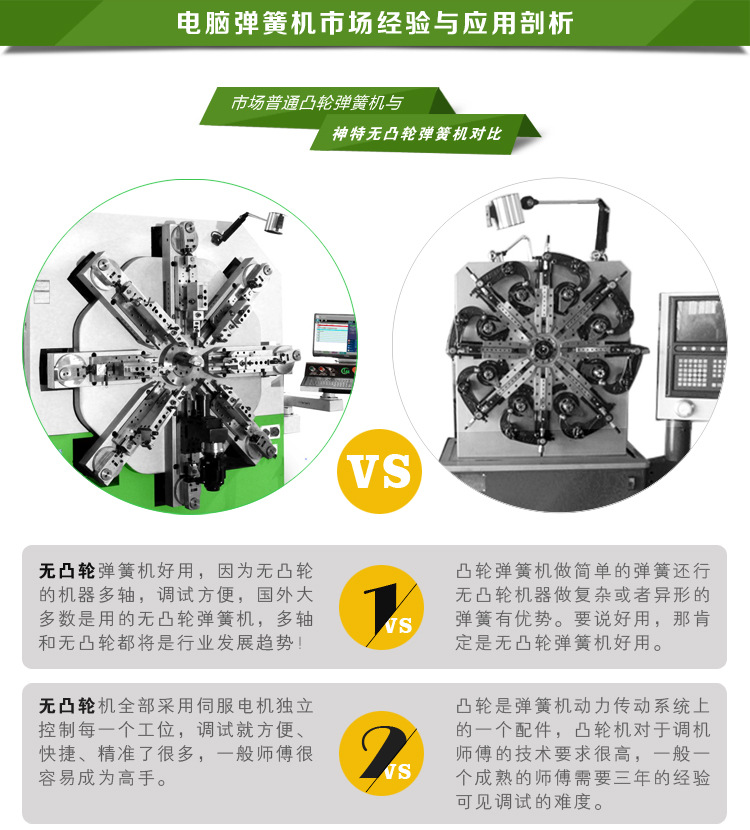 市場普通凸輪彈簧機與神特?zé)o凸輪彈簧機對比