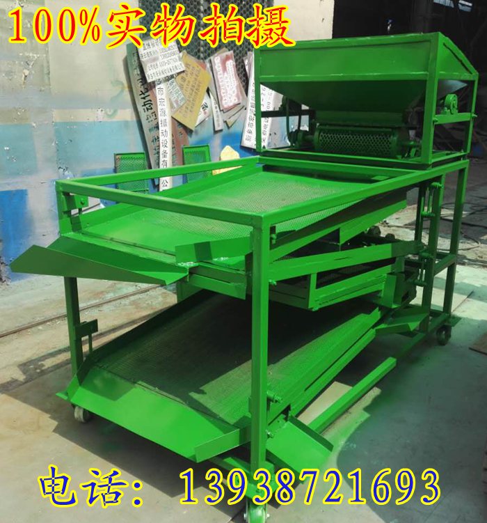 此機采用汽車曲軸原理+回旋篩優(yōu)點+回轉地輪自衡為一體,主構件由:機頭、機架、篩面、偏心連桿、電機、地輪等構成。外觀設計緊湊合理,可在原地360度旋轉,移動十分方便,電源(單相220v、三相380v)均可,噪聲低,經久耐用,篩凈效果95%以上。