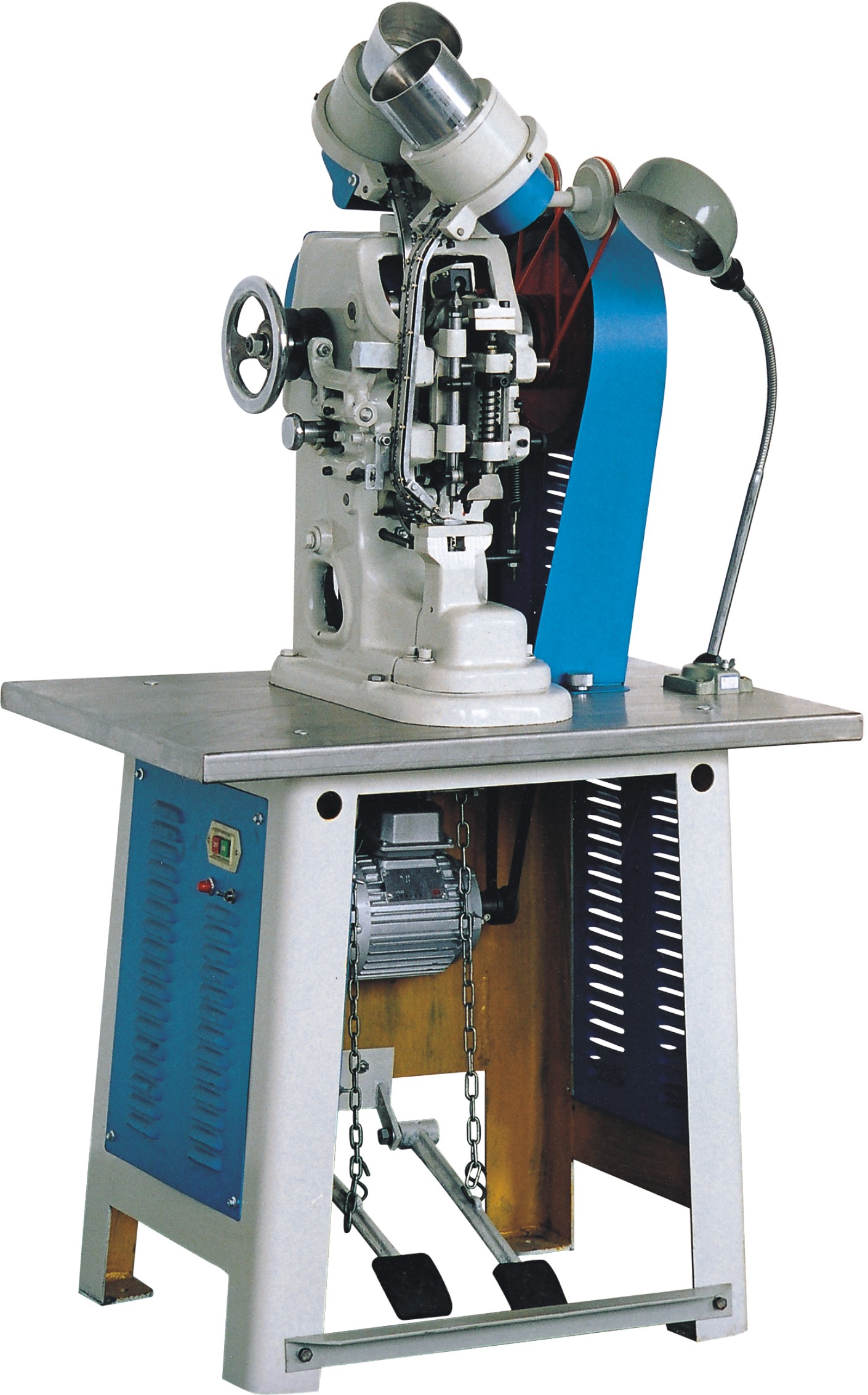 一:該機具有單打或連續(xù)釘打鞋眼、沖孔、打眼一次自動完成;