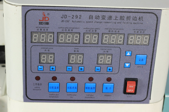 該機(jī)采用電腦芯片控制自動上膠折邊電路系統(tǒng),使整個作業(yè)過程實現(xiàn)智能控制化。