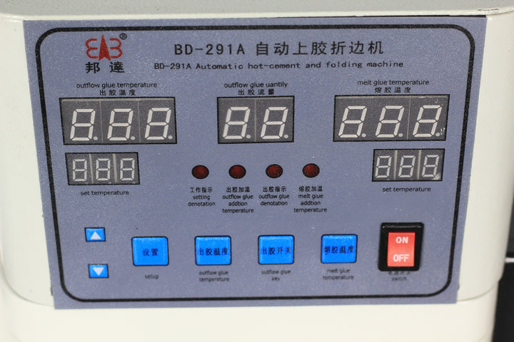 該機(jī)采用電腦芯片控制自動(dòng)上膠折邊電路系統(tǒng),使整個(gè)作業(yè)過(guò)程實(shí)現(xiàn)智能控制化。