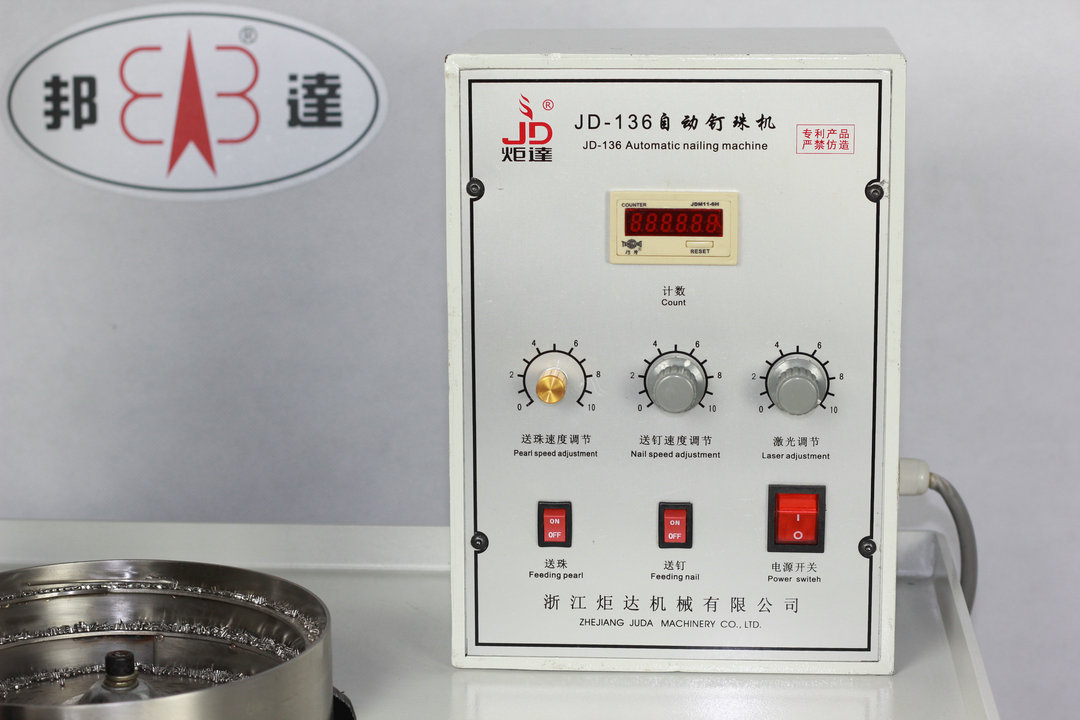 一:高精密振動(dòng)器輸送四爪釘,穩(wěn)定可靠。 二:旋轉(zhuǎn)式輸送珍珠,速度快、效率高。 三:真空吸珠裝置,釘珠穩(wěn)定準(zhǔn)確。 四:設(shè)有珍珠加熱裝置,可使珍珠軟化易釘,不破裂。 五:各種規(guī)格珍珠更換模套快捷方便。 六:紅外線定位對(duì)位,準(zhǔn)確可靠,操作簡(jiǎn)單。 七:?jiǎn)为?dú)頂針啟動(dòng)裝置,輕松解決不良四爪釘卡死現(xiàn)象。 |