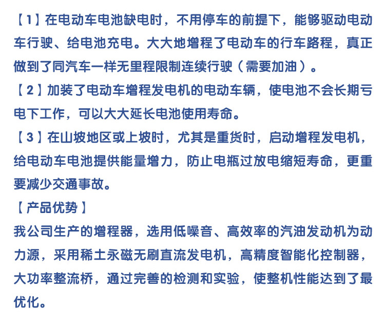 濰坊經(jīng)緯動力科技有限公司是一家集電動車增程器研發(fā)中心、車輛線束研發(fā)中心、車身鈑金加工中心等為一體的現(xiàn)代化新能源汽車部件研發(fā)、生產(chǎn)、銷售企業(yè)。公司致力于新能源的開發(fā)研究,始終緊跟市場需求,針對高端客戶,研發(fā)推出了170系列風冷、靜音、內(nèi)置電機、自動油門、空調等系列的增程器,即jw-1增程器;另外,公司根據(jù)客戶需求,研發(fā)生產(chǎn)了水冷系列增程器,即jw-2增程器;公司近期最新研制的GY6系列即JW-3增程器,功率大、超靜音,動力運轉更持久,與電動車匹配性能更優(yōu),舒適性更好,深受客戶的好評!公司研發(fā)部正在研發(fā)生產(chǎn)新一代增程器即jw-4增程器,即將投放市場,相信不久的將來,會給大家?guī)砀嗟姆奖闩c舒適! 經(jīng)緯動力,與您一路同行!