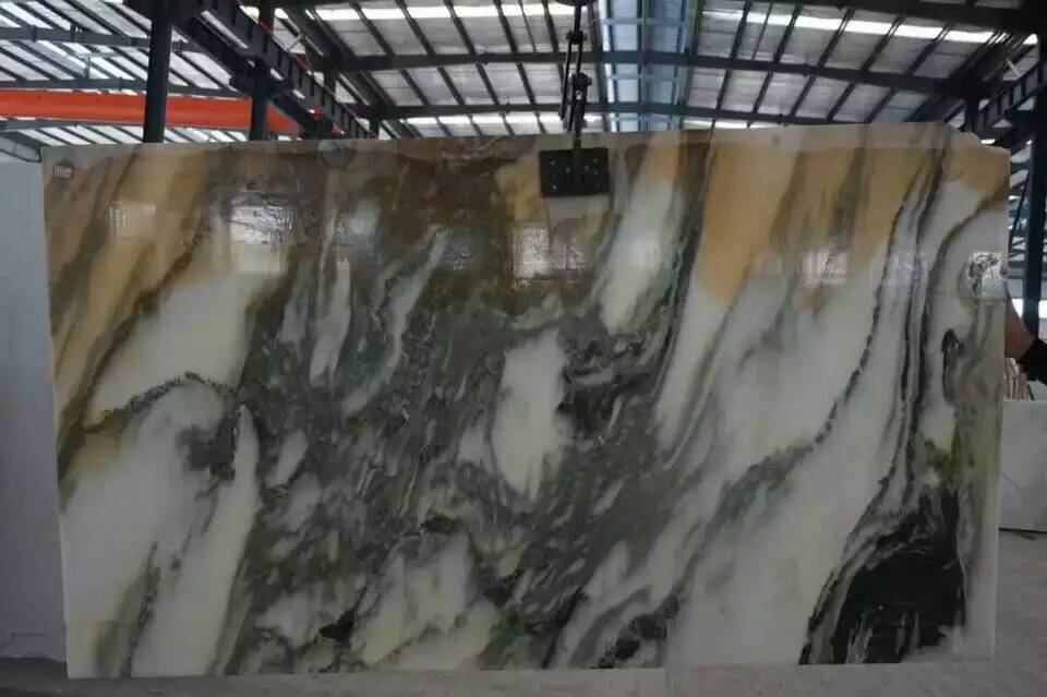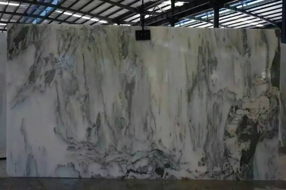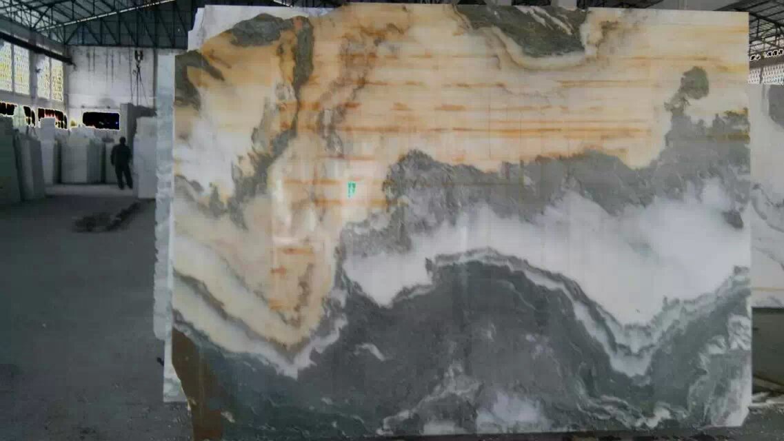 大理石的一種,是一種具有山水畫花紋的大理石。其花紋是由灰、深灰、暗綠、褐、淺褐等色調(diào)顯示出“叢山”、“險峰”、“彩云”、“山間的溪流”、“壁懸的瀑布”等。拋光后顯示出一幅幅山水畫來,非常美觀。它質(zhì)地純潔,結(jié)構(gòu)細(xì)致均勻,透光性較好,塊度大,拋光性較好,是最優(yōu)質(zhì)的工藝大理石。