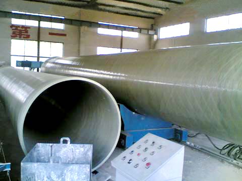 由計(jì)算機(jī)控制,在芯模上按規(guī)定的與纖維纏繞玻璃鋼管相同的工藝制造內(nèi)襯,凝膠后按設(shè)計(jì)好的線型和厚度纏繞結(jié)構(gòu)層,并將石英砂與樹脂混合的砂漿纏在結(jié)構(gòu)層中,最后纏繞外保護(hù)層。