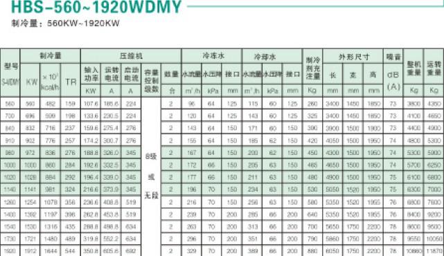 制冷量(KW) 165--850(單壓縮機(jī)系列);790--1700(雙壓縮機(jī)系列);