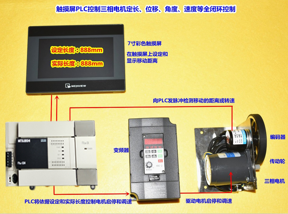 ?觸摸屏PLC變頻器編碼器閉環(huán)控制電機移動定位實驗