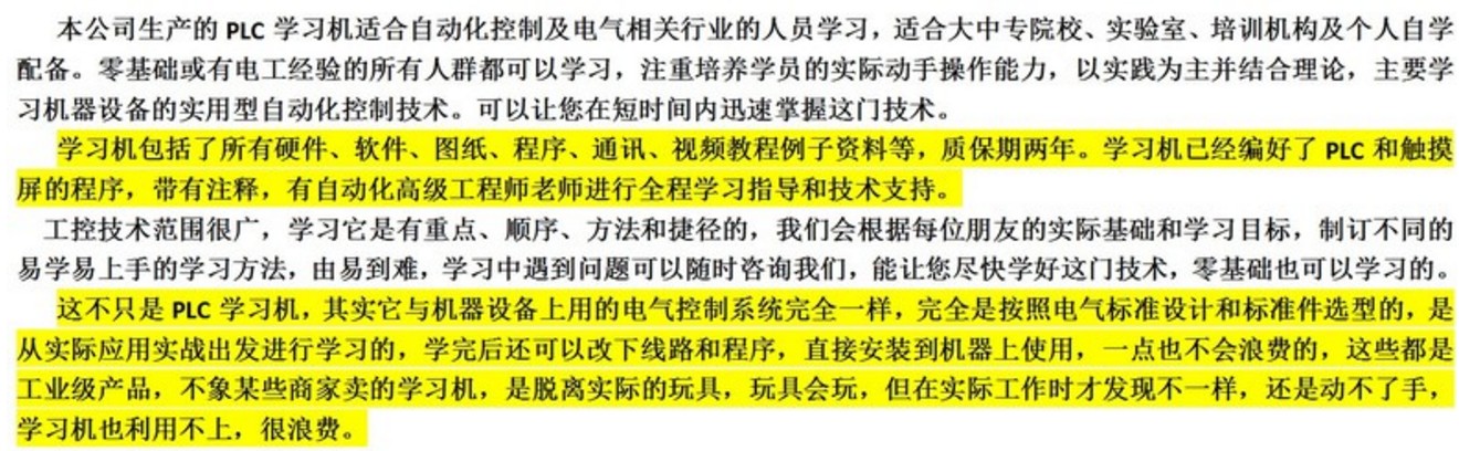這不只是PLC學(xué)習(xí)機,其實它與機器設(shè)備上用的電氣控制系統(tǒng)完全一樣,完全是按照電氣標(biāo)準(zhǔn)設(shè)計和標(biāo)準(zhǔn)件選型的,是從實際應(yīng)用實戰(zhàn)出發(fā)進行學(xué)習(xí)的,學(xué)完后還可以改下線路和程序,直接安裝到機器上使用,一點也不會浪費的,這些都是工業(yè)級產(chǎn)品,不象某些商家賣的學(xué)習(xí)機,是脫離實際的玩具,玩具會玩,但在實際工作時才發(fā)現(xiàn)不一樣,還是動不了手,學(xué)習(xí)機也利用不上,很浪費。