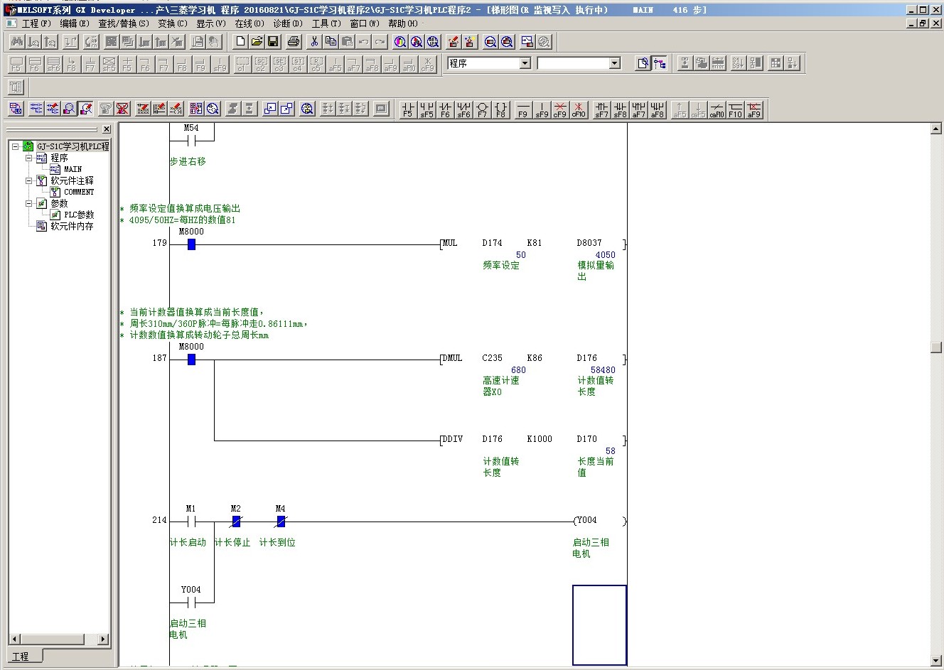 F1:帶有1套步進軸(包括1個步進驅(qū)動,1個步進電機,1個絲桿滑臺,3個接近傳感器),采用原裝三菱PLC型號FX3U 16MT。