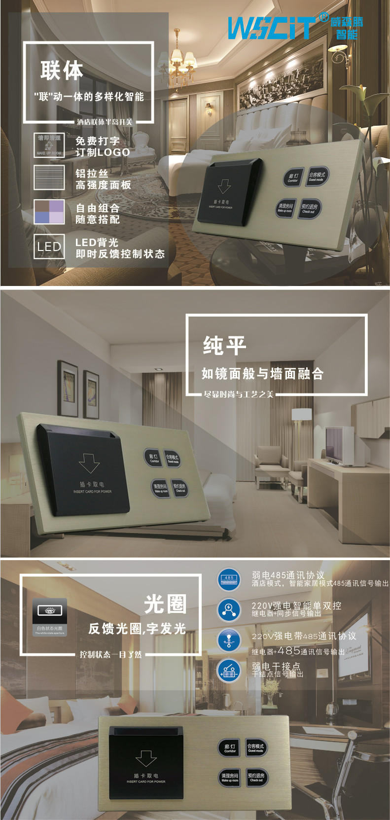 主營產(chǎn)品:酒店照明開關(guān)面板,調(diào)光控制器模塊,窗簾控制模塊,空調(diào)控制模塊
