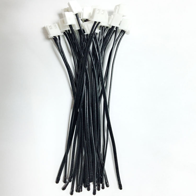 溫度傳感器是將高精度、高可靠的NTC熱敏電阻器與PVC導線、鐵氟龍導線等導線連接,用絕緣、導熱、防水材料封裝成所需要的形狀,便于安裝與遠距離測控溫.