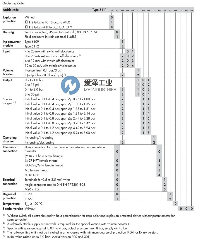 SAMSON轉(zhuǎn)換器6111系列其他常用型號(hào):